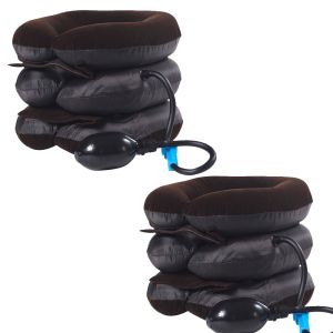 Designed for neck traction or support, or as a travel pillow, featuring a hand pump to inflate it from time to time to overcome leaking issue which is inevitable for similar products.