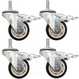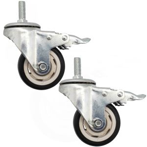 Bolt mounted caster wheels which have 2 types: swivel only and swivel with brake. They share the same height, and can be used for furnitures, chairs, or other equipment.