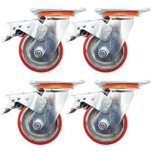 Made from cast iron metal, this 4inch 10cm swivel&brake/lock caster has a capacity of 250kg ea, and is suitable for heavy duty industrial or home use for furniture, trolley, equipment, bench, etc.