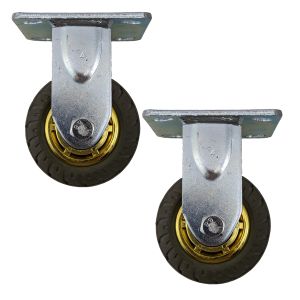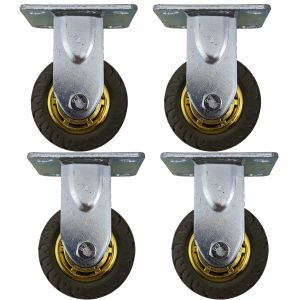 Non-rigid rubber caster wheel with a treaded tyre with limited shock absorbing function. Capacity: 280KG ea, Overall Height:142MM, Type:Non-Swivel or Fixed. Qty: Single.
