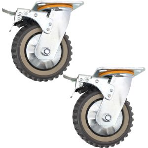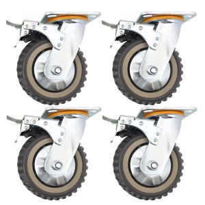 Hard plastic caster wheel with a solid tyre with cover. It comes with a capacity of 350kg ea. Type: Swivel with lock or brake. Qty: Single. Can be used on flat ground, rough terrain or on grass. Grease via narrow gap.