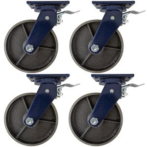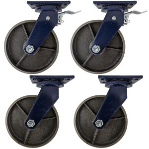 Heavy duty all metal caster wheels that can endure high temperature and carry very heavy load. They can resist heat up to 300 Celsius degrees and take up to 1000KG each caster for the largest size in 8 inch. We have 4 inch, 5 inch, 6 inch and 8 inch for this series.